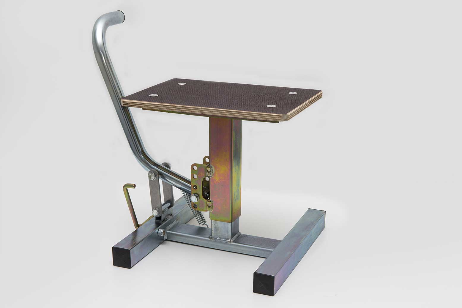 CMV produce cavalletti alza moto regolabili in altezza, con sgancio a pedale, per moto da enduro, da cross e da strada, resistenti e stabili anche per le moto più pesanti.